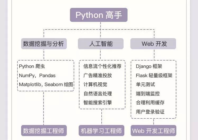 这张图里还只是高手们使用 Python 最多的场景,他们其实还能用 Python 做更多的事情。这里不妨留下这个包袱,等你成为高手的那天亲自去解开吧。