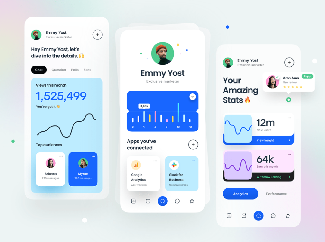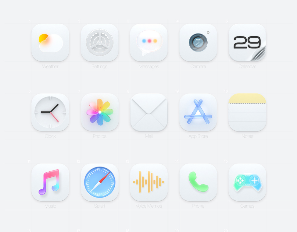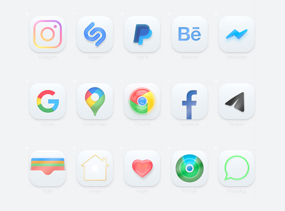 点评:静电在前几天的推文中讲过,目前的趋势是白色底加上轻拟物风格的方式来绘制图标,大家不妨感受一下Dribble图标的进化过程。加上这组组作者的展示,是不是很清爽,爱了爱了。