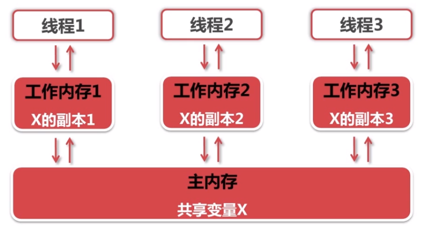2.不同线程之间无法访问其他线程中的变量,线程中变量值的传递需要通过主内存来完成。