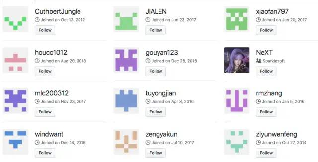 于是我仔细查看了一下 star 它用户的人,发现一个有趣的现象!我这里随便截图一下。