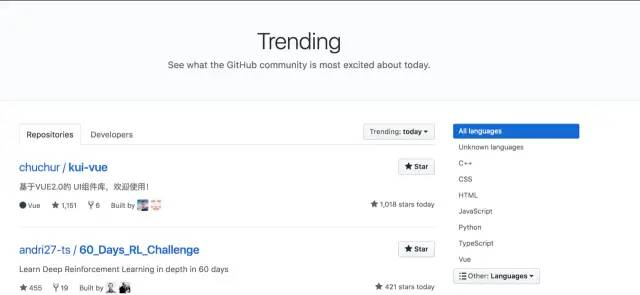 今天上班,刷了一下 Github Trending,发现第一名是一个名叫 kui-vue,一天涨了一千多个 star 项目。