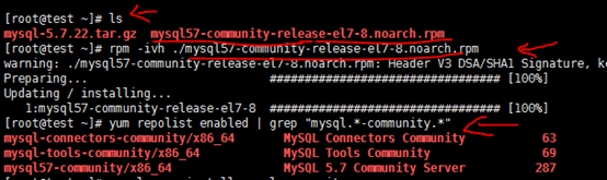 rpm -ivh ./mysql57-community-release-el7-8.noarch.rpm (当前下载的包)