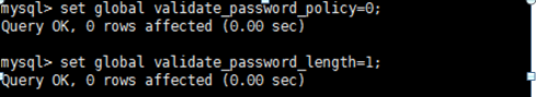 set global validate_password_length=1; (设置密码最低长度为4位)