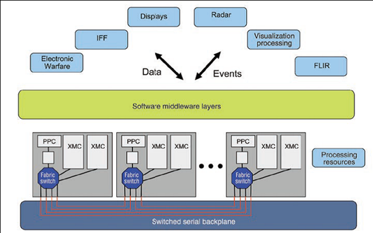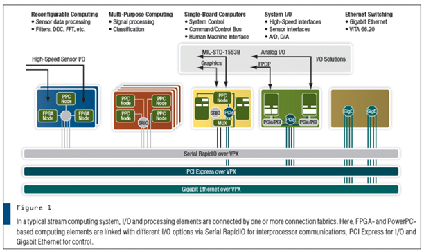 RS-422和MIL-STD-1553等老的总线标准仍然在使用,与此同时,用于高分辨率数字视频传输的DVI以及用于大容量存储的Serial ATA等较新的标准,也越来越多的采用,使得信号速率到达multi-gibabit范围内。需要数以百计的I/O信号——这些信号中1Gbps或者更大的数据吞吐率的I/O越来越多,这极大的冲击着传统的任务计算系统。所有的这些I/O信号需要散布在系统内不同板级模块中。为了避免在系统中增加额外的专用I/O模块,板级I/O数量增长承受着巨大的压力。
