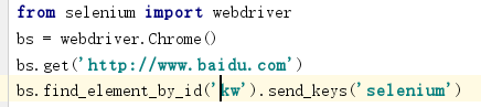 我们在python输入的元素定位语法:bs.find_element_by_id('kw').send_keys('selenium (必须包含id属性)