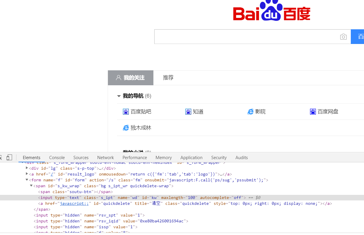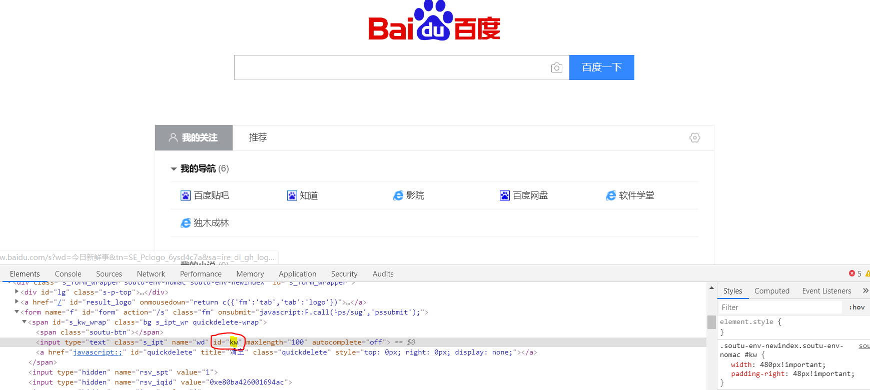1.相对路径加属性: bs.find_element_by_xpath("//*[@id='kw']") 、bs.find_element_by_xpath("//*[@name='wd']") 、bs.find_element_by_xpath("//input[@class='s_ipt']")