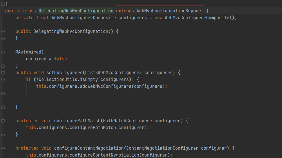 org.springframework.web.servlet.config.annotation.DelegatingWebMvcConfiguration这个配置类继承WebMvcConfigurationSupport