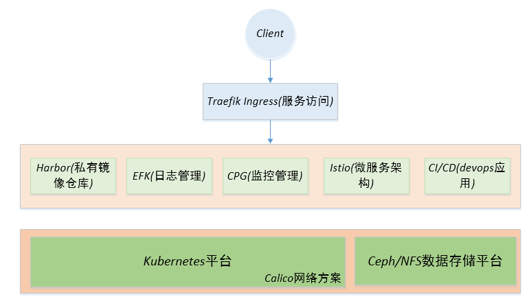 服务访问层:即由Traefik ingress实现服务发现、负载均衡和路由规则定义等;