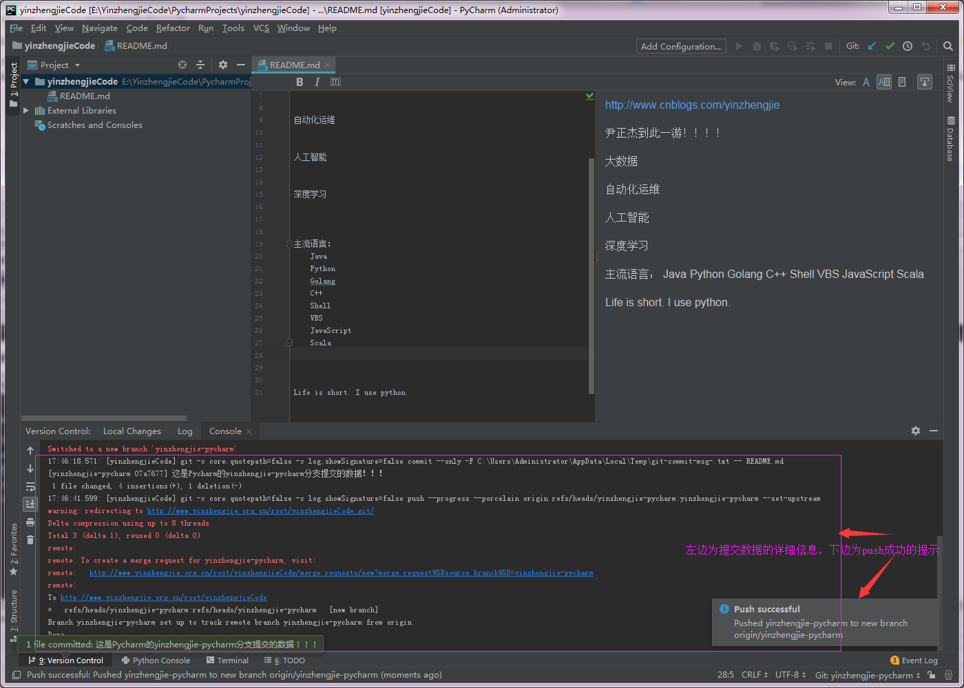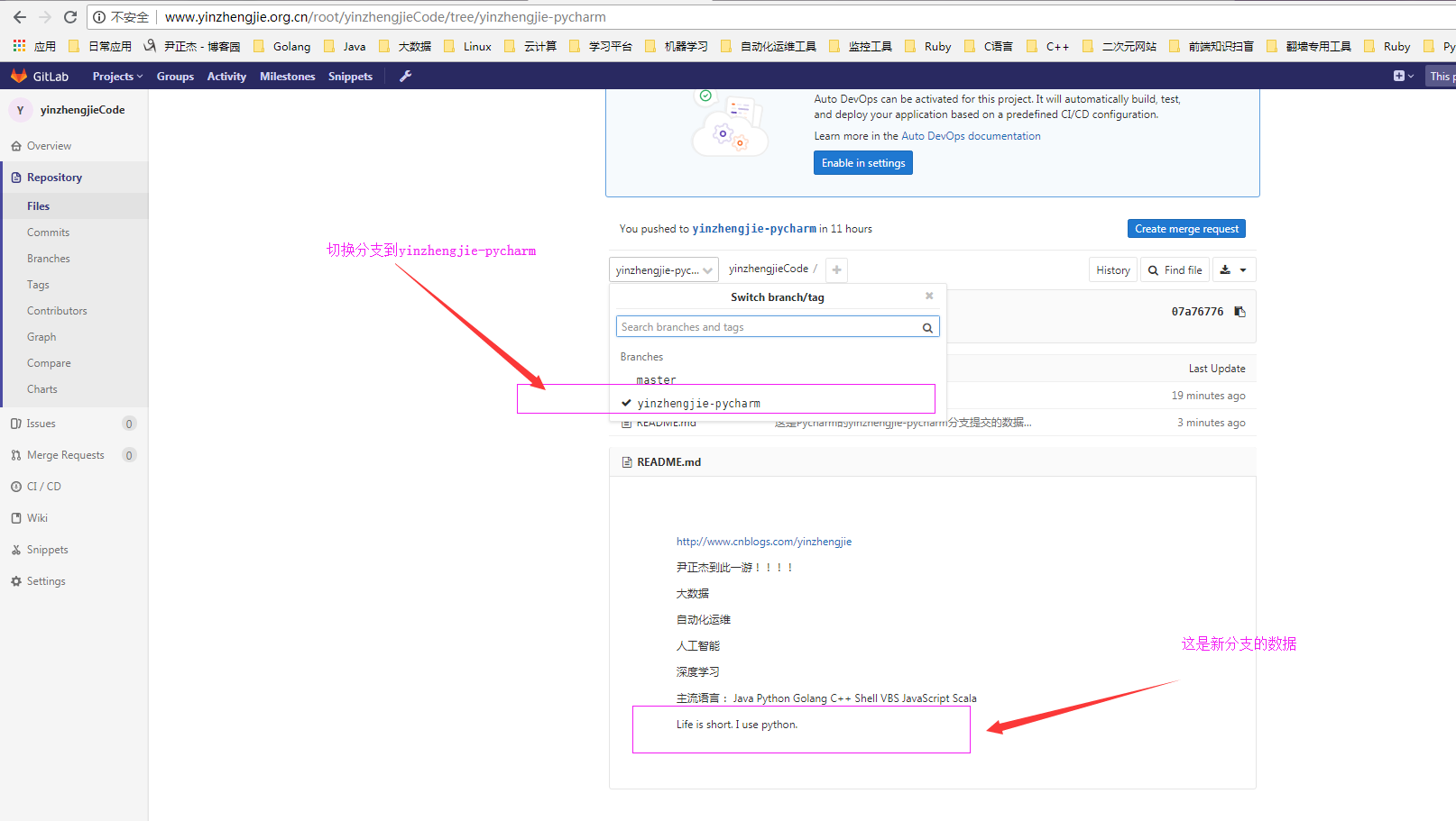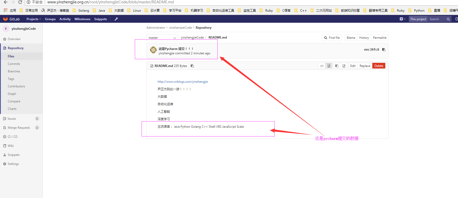 我这里主要是针对局域网的自减的GitLab服务器,python开发工程师如何用python相关IDE,比如pycharm链接GitLab。关于如何部署GitLab,详情请参考我之前的笔记:https://www.cnblogs.com/yinzhengjie/p/9568657.html。