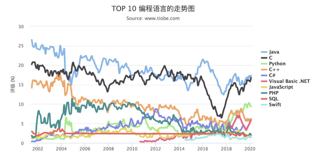 到目前为止,python已经成为Internet开发的重点。从“十大编程语言趋势图”可以看出,python已经跃居第三位,成为2017年最流行的语言。