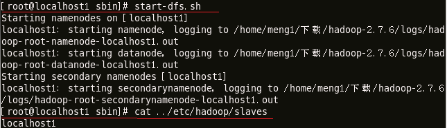 hdfs:hadoop-2.7.6/sbin/(在sbin目录下执行)start-dfs.sh