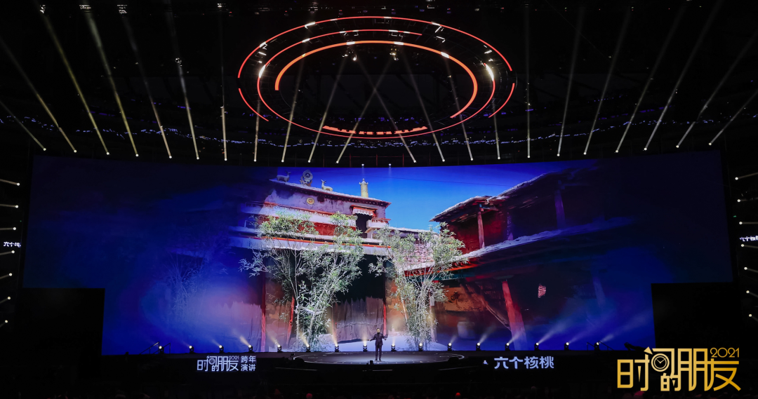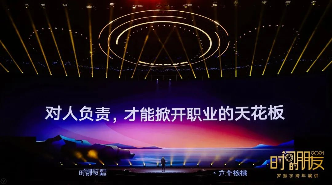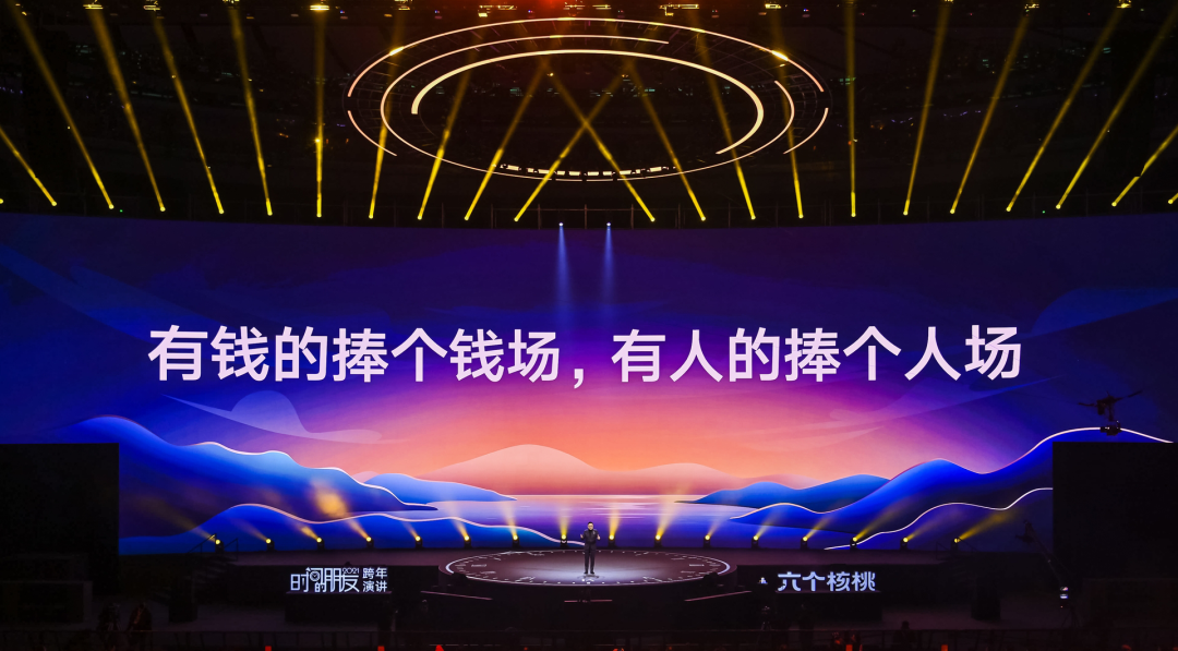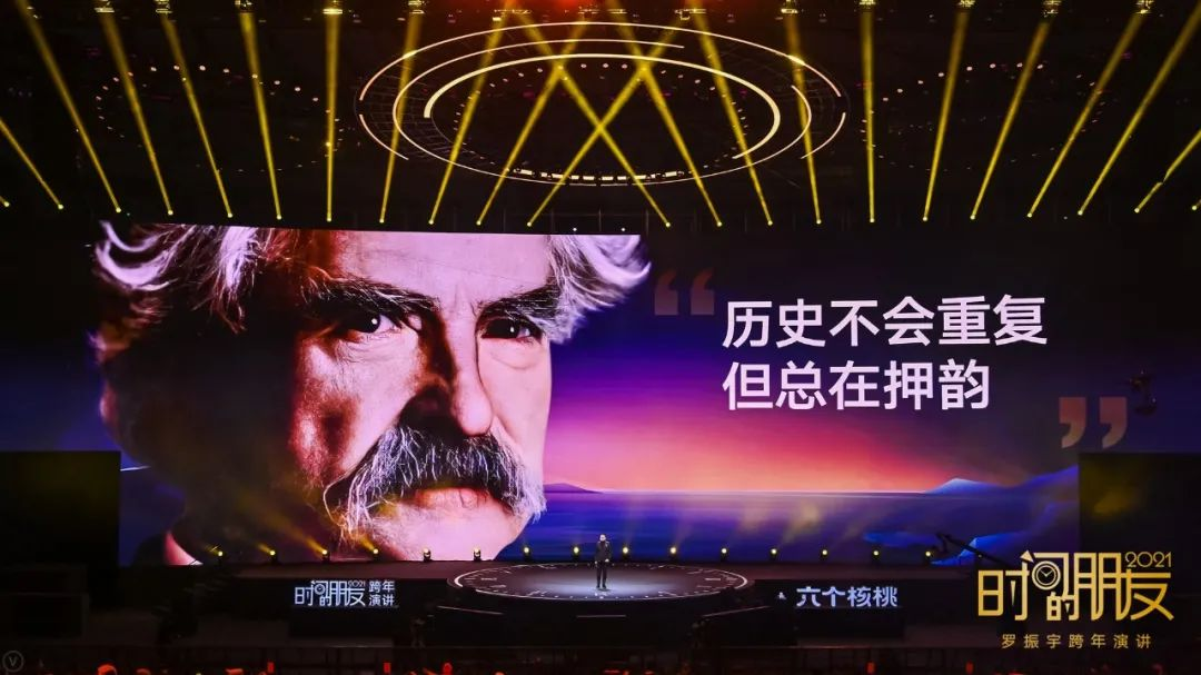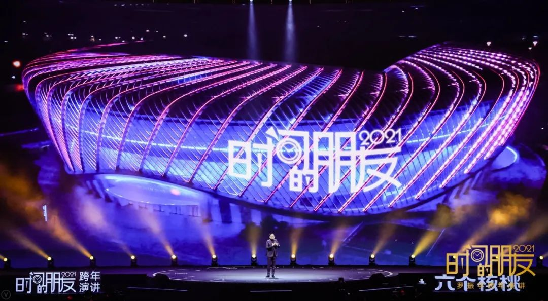 2020年12月31日20:30,武汉光谷国际网球中心,罗振宇“时间的朋友”跨年演讲如约而至。