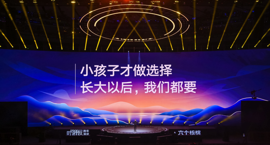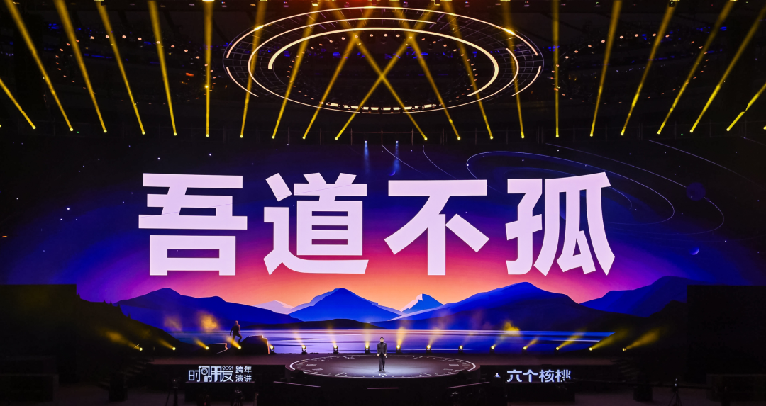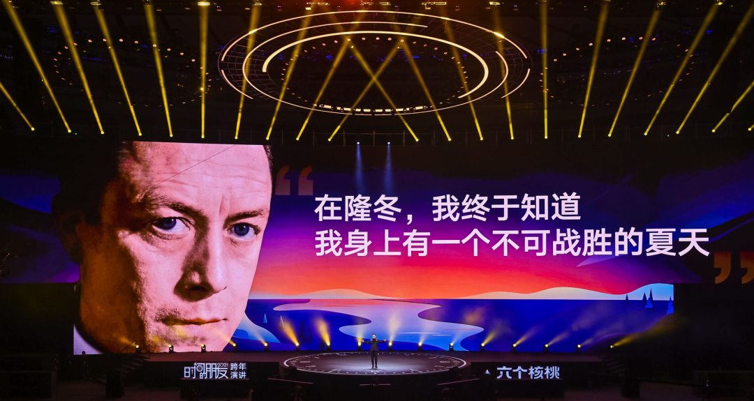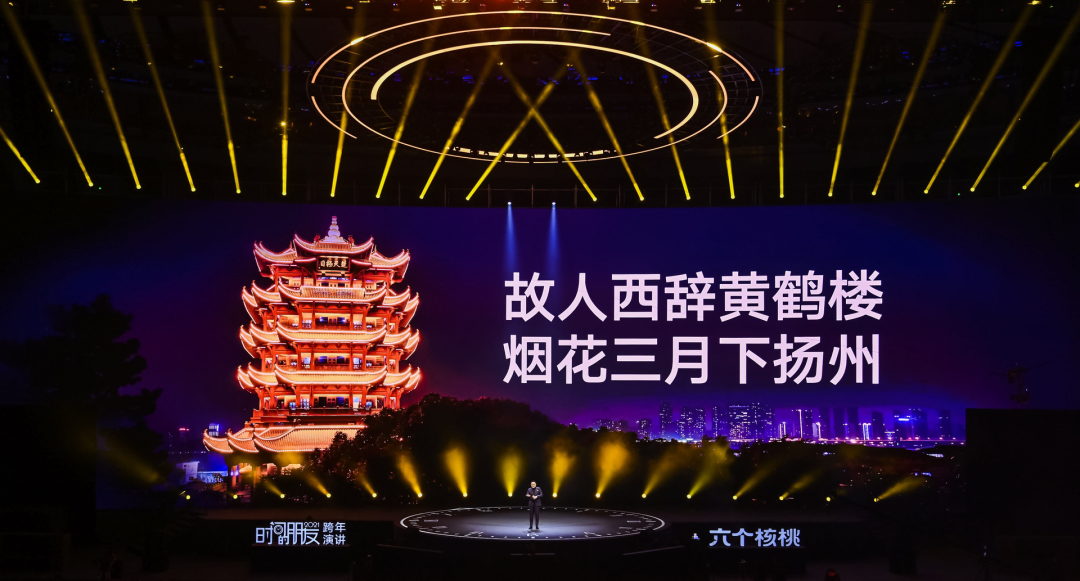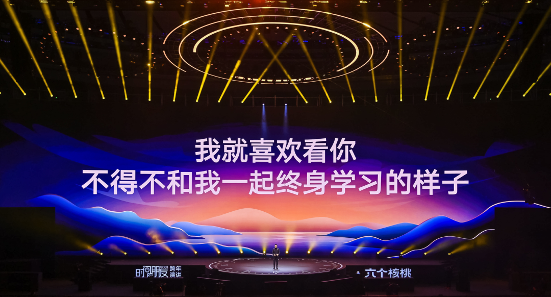 2020年12月31日20:30,武汉光谷国际网球中心,罗振宇“时间的朋友”跨年演讲如约而至。