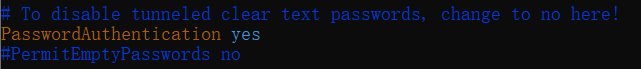 # 改为yes可以使用密码登录,ssh密钥登录使用默认no