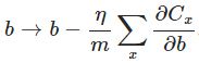 对比上面w的更新公式,可以发现后面那一项变了,变成所有导数加和,乘以η再除以m,m是一个mini-batch中样本的个数。