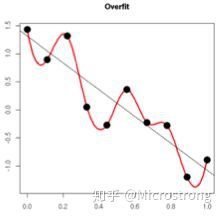 原理:(1)从模型的复杂度上解释:更小的权值w,从某种意义上说,表示网络的复杂度更低,对数据的拟合更好(这个法则也叫做奥卡姆剃刀),而在实际应用中,也验证了这一点,L2正则化的效果往往好于未经正则化的效果。(2)从数学方面的解释:过拟合的时候,拟合函数的系数往往非常大,为什么?如下图所示,过拟合,就是拟合函数需要顾忌每一个点,最终形成的拟合函数波动很大。在某些很小的区间里,函数值的变化很剧烈。这就意味着函数在某些小区间里的导数值(绝对值)非常大,由于自变量值可大可小,所以只有系数足够大,才能保证导数值很大。而正则化是通过约束参数的范数使其不要太大,所以可以在一定程度上减少过拟合情况。