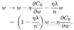 小于1,它的效果是减小w,这也就是权重衰减(weight decay)的由来。当然考虑到后面的导数项,w最终的值可能增大也可能减小。