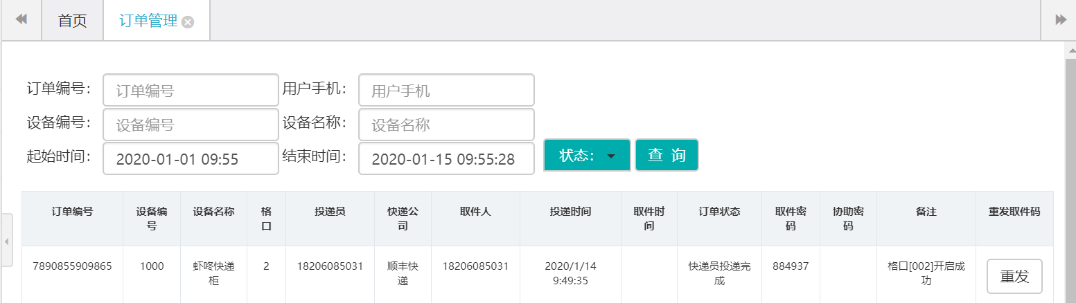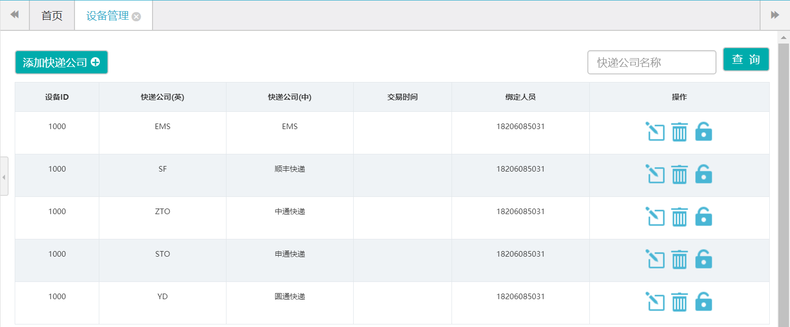1.2 配置快递负责人配置(设备管理->快递负责人)