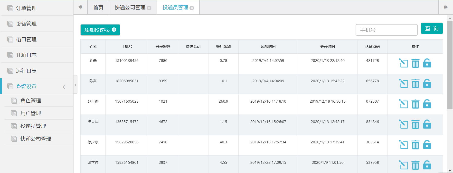 程序运行(使用平台添加的快递员账户和密码登录)