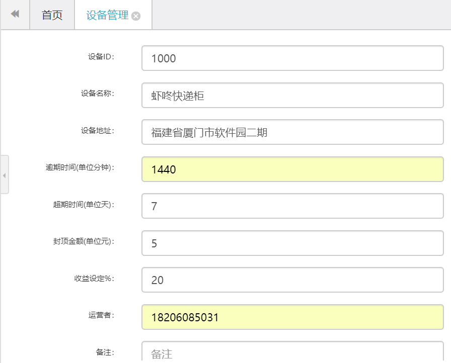 若免费使用快递柜可把投递费用和逾期费用设置成0