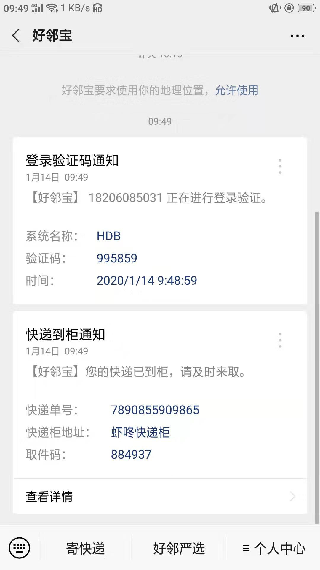 取件码发送: