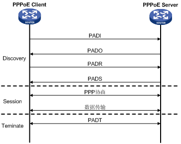 PPPoE可分为三个阶段,即Discovery阶段、Session阶段和Terminate阶段。