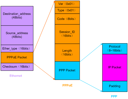 Discovery阶段由四个过程组成。完成之后通信双方都会知道PPPoE的Session_ID 以及对方以太网地址,它们共同确定了唯一的PPPoE Session。