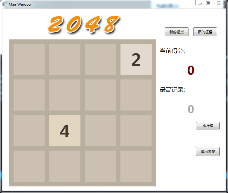 现在运行游戏,不断点击开始新游戏按钮,会在不同位置生成两个2或4的数字,并显示出来。