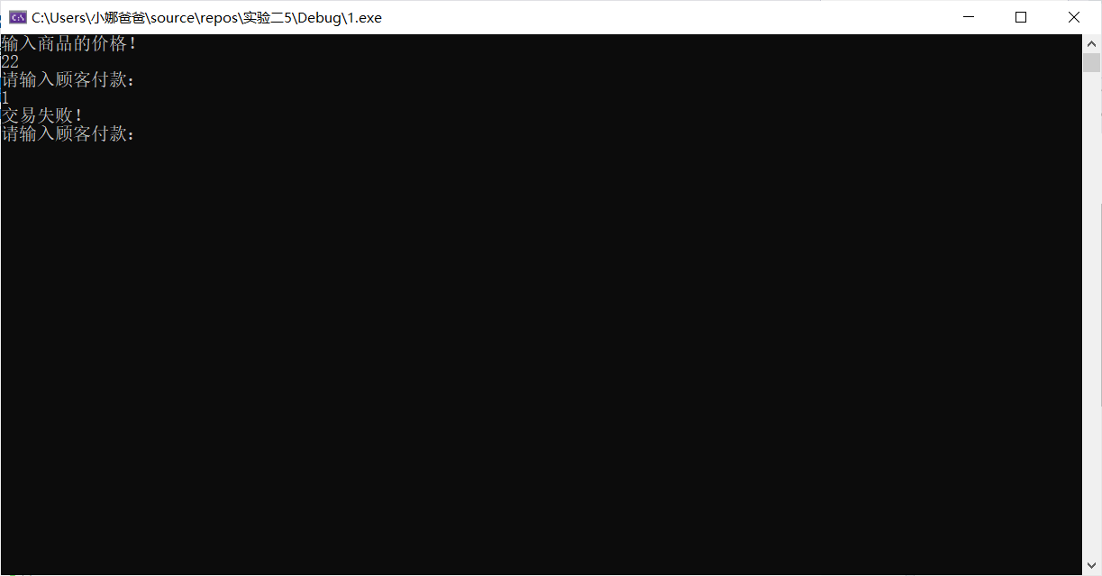 printf("交易失败!\n");