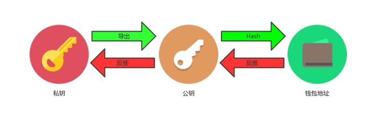 首先成一个私钥,使用这个私钥导出公钥,公钥经过Hash变成账户地址,或者叫钱包地址。