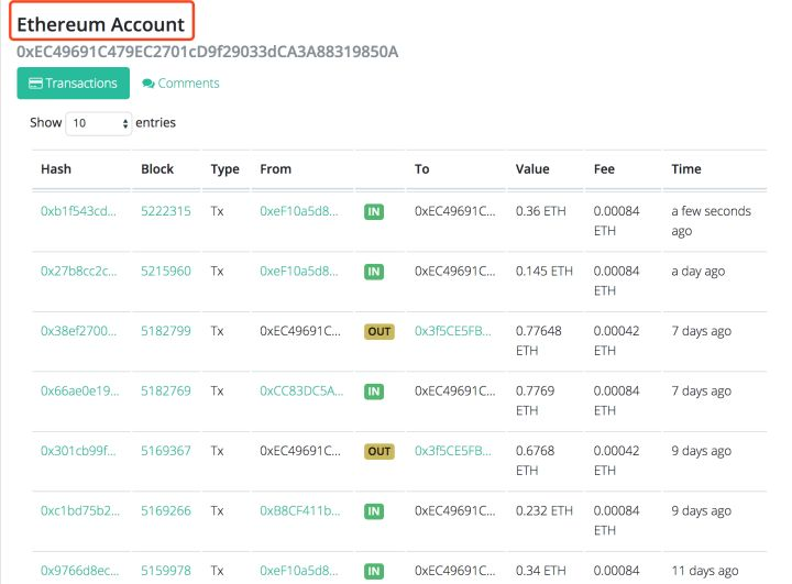 但是,对一个钱包地址来说,它获得ETH的方式还可以是交易。交易虽然不能创造更多ETH,但是却可以增加/减少一个钱包地址的余额,本质上是ETH的流动。