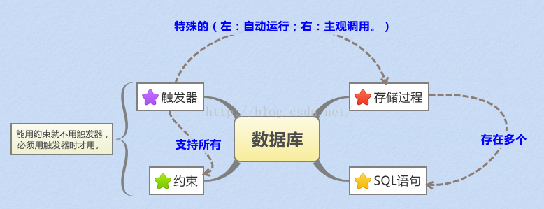 触发器、存储过程和函数三者有何区别: