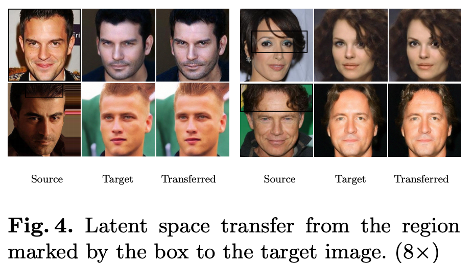 下图 4 展示了图像中面部特征、发色和眼睛颜色的风格迁移: