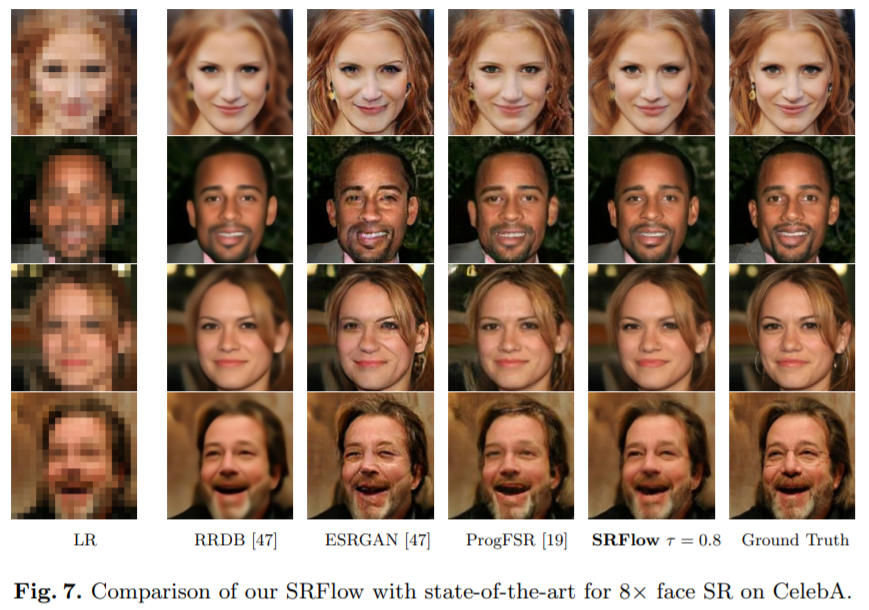 研究者将 SRFlow 网络用于多项应用和图像处理任务,该研究的技术利用了 SRFlow 网络的两个关键优势,而这是基于 GAN 的超分辨率的方法 [47] 所不具备的。