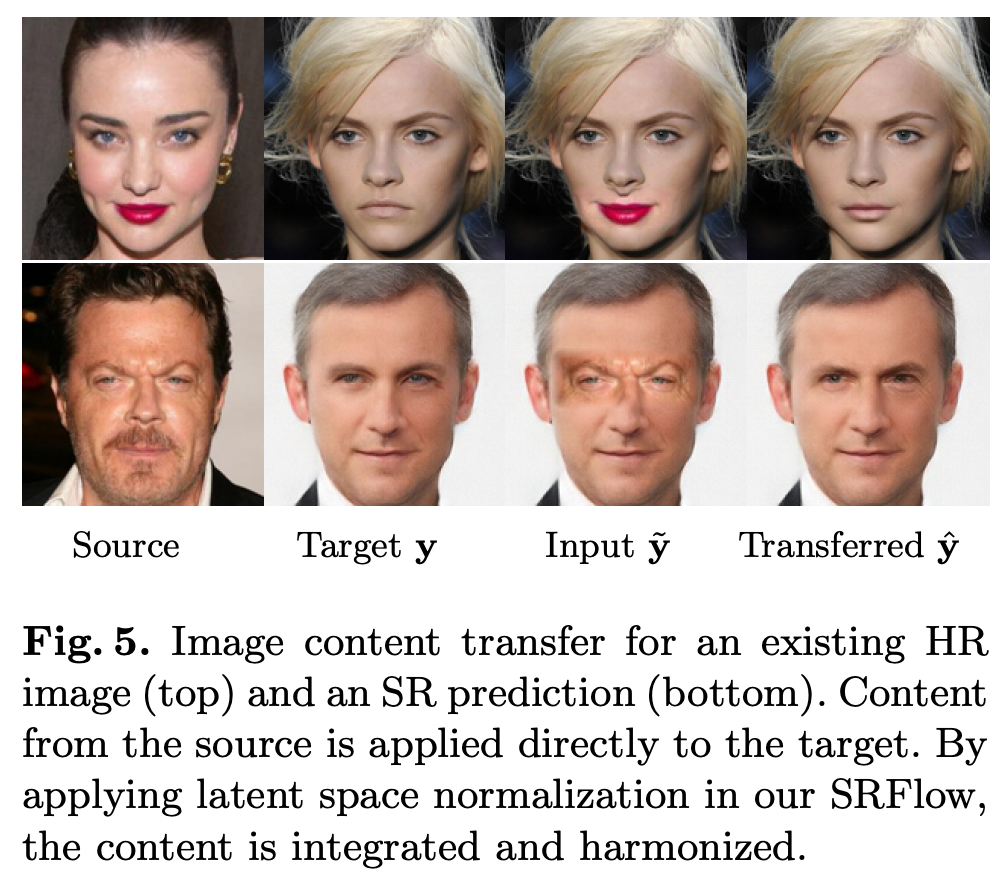 对 LR 图像 x 进行超分辨处理时,SRFlow 允许迁移现有 HR 图像