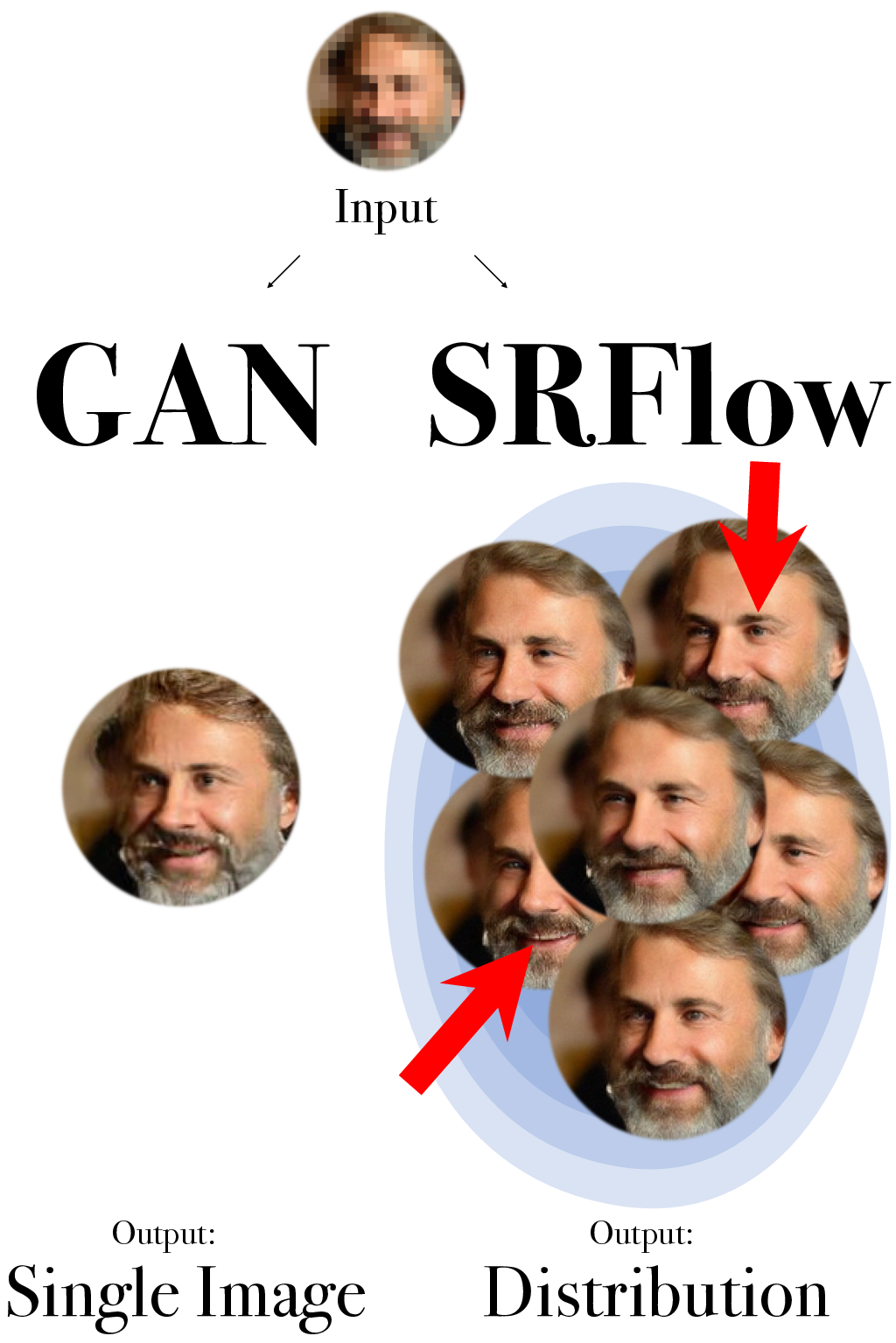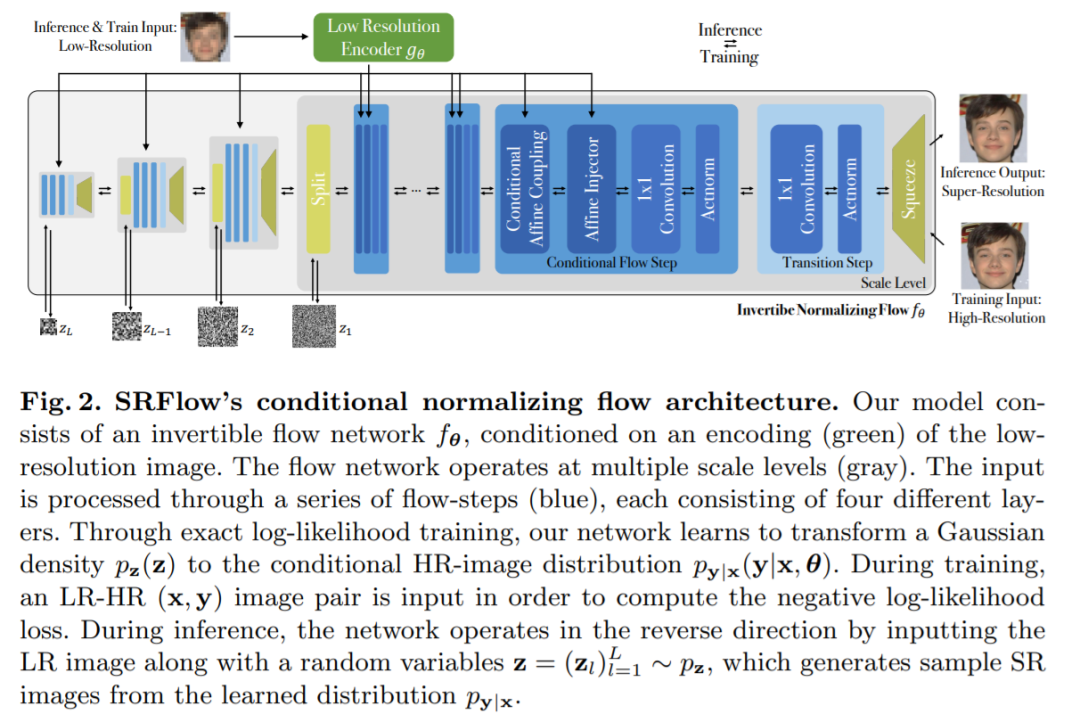该模型是一种基于归一化流的超分辨率方法,具备比 GAN 更强的脑补能力,能够基于低分辨率输入学习输出的条件分布