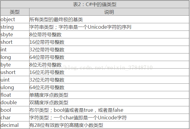 简单数据类型(Primitive)在C#中称为值类型,C#预定义的简单数据类型比Java多。例如,C#有unit,即无符号整数。表2列出了所有C#的预定义数据类型: