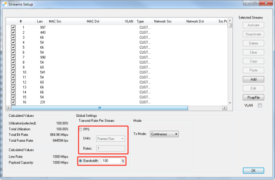 也可以在Streams Setup界面中,通过鼠标点击某条数据流的某一列,进行相关修改。