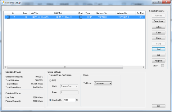 当在MiniSMB中定义了一条数据流,可以在Streams Setup界面中,选中此数据流,并按ctrl+c,ctrl+v复制为多条数据流。