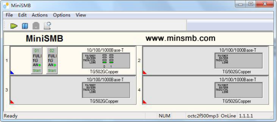 Minismb软件在性能上与Spirent公司的smartbits软件一样,可以给用户的产品生命周期中的各个阶段提供各种分析解决方案。