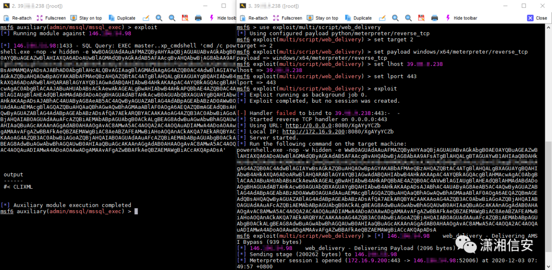 1. 利用mssql_exec模块执行powershell payload绕过Windows Defender获取MSF会话;