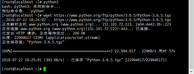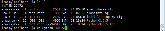 2、下载完成后到下载目录下,解压下载文件(使用命令:tar - zxvf Python-3.6.5.tgz)