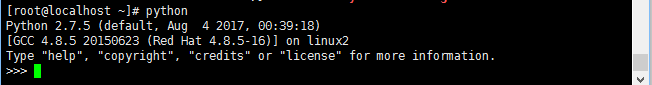 上述输出表明,当前计算机默认使用的Python版本为Python 2.7.5。看到上述输出后,如果要退出Python并返回到终端窗口,可按Ctrl + D或执行命令exit() 。