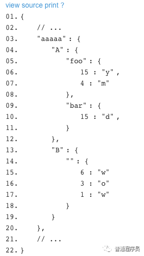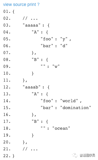 相反,我发现(把HBase)看成一个多维Map更容易思考这个问题 - 如果你愿意的话,可以使用嵌套Map。在之前的JSON示例中添加一个维度: