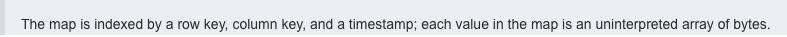 值得注意的是,在Hbase / BigTable中,术语“有序”并不意味着“值(values)”已排序。除了键之外,没有任何自动索引,就像在普通Map实现中一样。