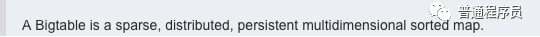 幸运的是,Google的BigTable论文清楚地解释了BigTable究竟是什么。这是“数据模型”部分的第一句话: