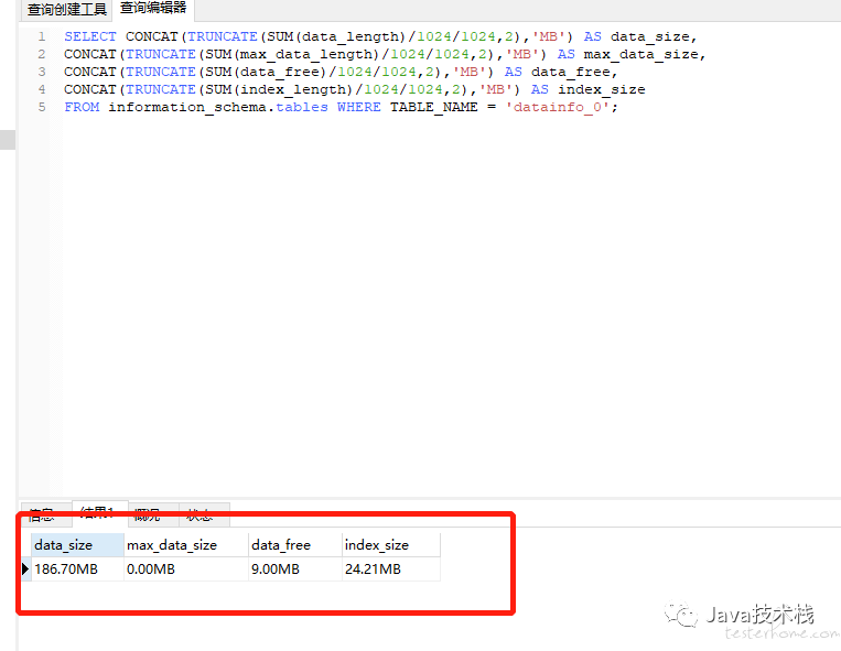 CONCAT(TRUNCATE(SUM(max_data_length)/1024/1024,2),'MB') AS max_data_size,