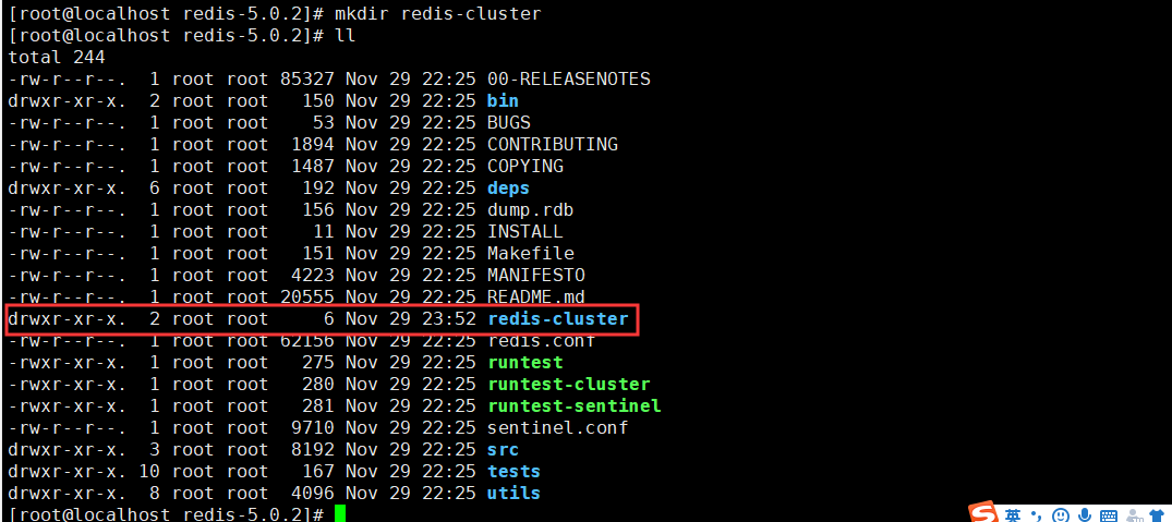 ③ 创建集群配置文件夹 mkdir redis-cluster