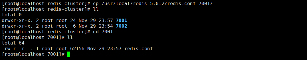 ⑤ (1)cp /usr/local/redis-5.0.2/redis.conf 7001/ (2) cd 7001