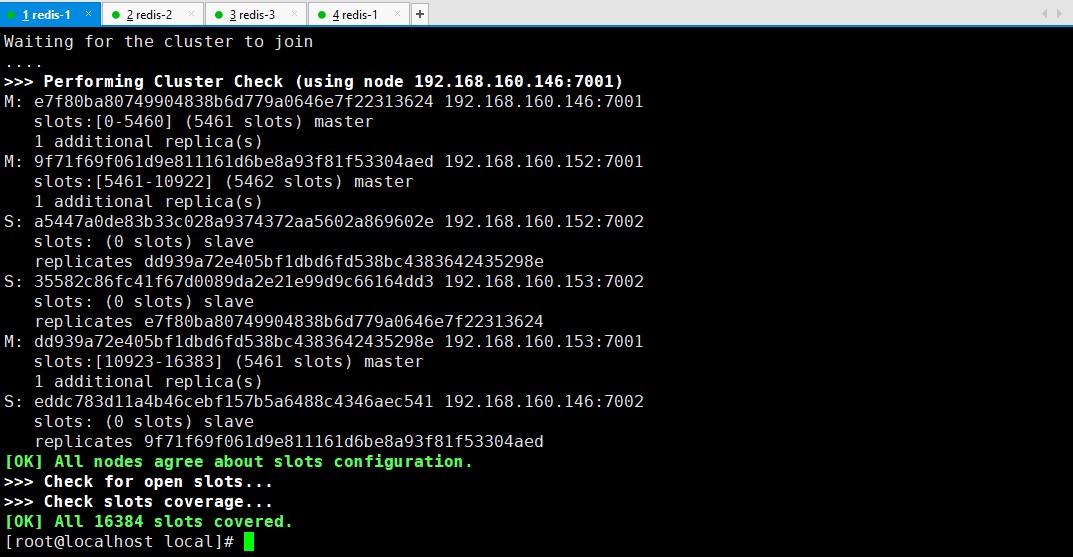 #节点目前包含的槽:例如 192.168.160.146:7001目前包含0-5460个哈希槽(master)